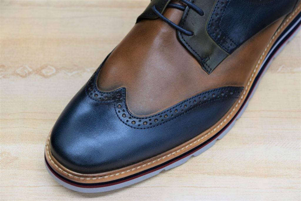 大胆な色遣いで目を惹く一足です。ジャケットスタイルに合わせてもかっこよく決まります。見た目に反して重量は軽く、足の疲れが気になる日でも履いていただけると思います。