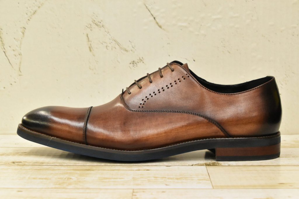 ストレートチップですが、他のモデルよりも深くラインが入っているので、少しカジュアルな雰囲気に仕上がっています。