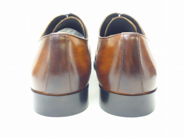 日本製のビジネスシューズです。幅広表示はありませんが足入れがよく、革も柔らかいので履き心地抜群です。サイズ感はアディダスやコンバースの30cmを履いているスタッフが28.5cmでちょうどよい感じでした。こちらの商品は職人が一足一足染めてるので生産時期により色味が異なる場合があります。